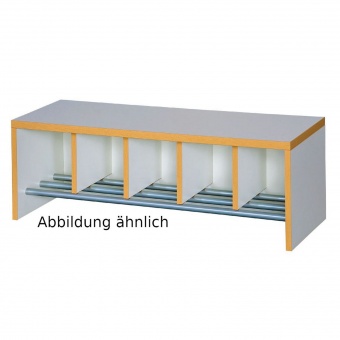 Garderobenbank in Wangenbauweise, mit festem Aluminium Schuhrost mit Facheinteilungen