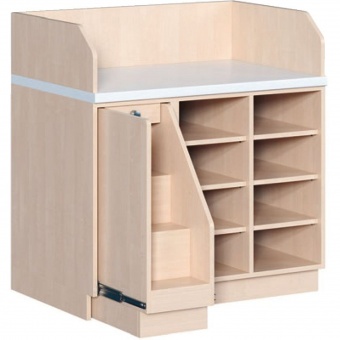 Wickelkommoden mit ausziehbarer Treppe links, Regal mit 6 EB
