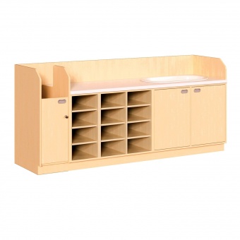 Wickelkommoden mit fester Anstelltreppe rechts, Regal mit 9 EB