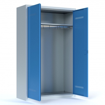 Garderobenschrank aus Stahl, 195 cm hoch, 120x40 cm (B/T), 1 Kleiderstange, 14 Haken