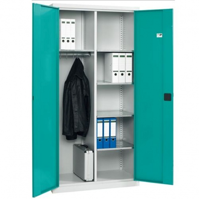 Garderobenschrank aus Stahl, 195 cm hoch, 120x50 cm (B/T), 4 Böden, Garderobe links,