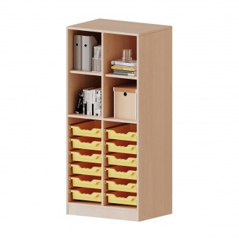 ErgoTray Regal, 2reihig, 4 OH, oben 4 Fächer unten 12 flache Boxen, B/H/T 70,3x154x40cm
