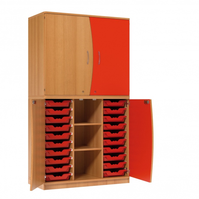 2 Böden, 20 flache Schübe rot, Ergo Tray Boxen