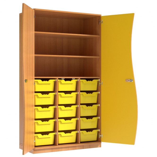3 Böden, 15 hohe Schübe gelb, Ergo Tray Boxen