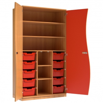 Der Wellentürenschrank kann ein optisches Highlight in Ihrer Schule sein. Er istmodern, farbenfroh und funktional. Die Türfarbe des Wellentürschranks orientiert sich