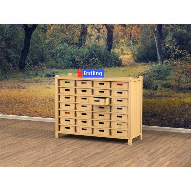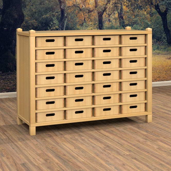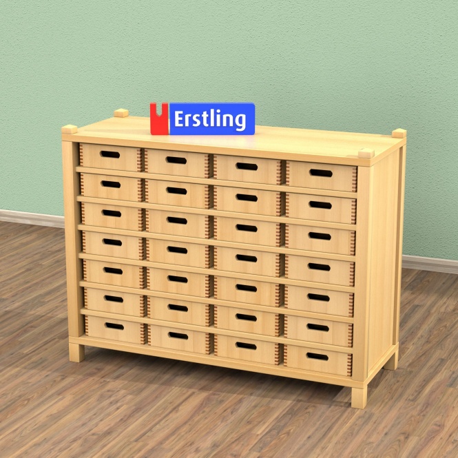 Der Stollenschrank mit Holzkästen ist mit seinen Aufbewahrungsmöglichkeiten optimalfür die Schule geeignet. Die Stollenschränke sind modular aufgebaut, mit 4x4 cm