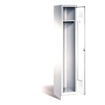 Der Stahlschrank hat über zwei Kunststoff-Lamellentüren.
