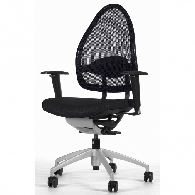 Position gewährleistet wird. Die Netzrückenlehne hat ein integriertes Body-Balance-