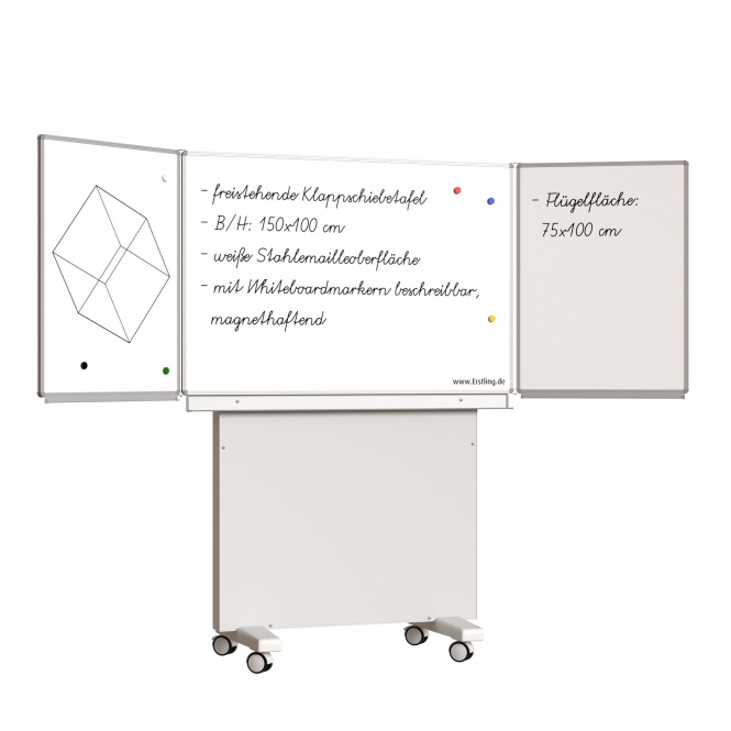 Fahrbare Klappschiebetafel, Stahlemaille weiß