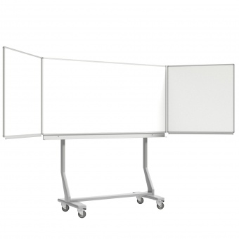 Klappschiebetafel, fahrbar, Stahlemaille weiß