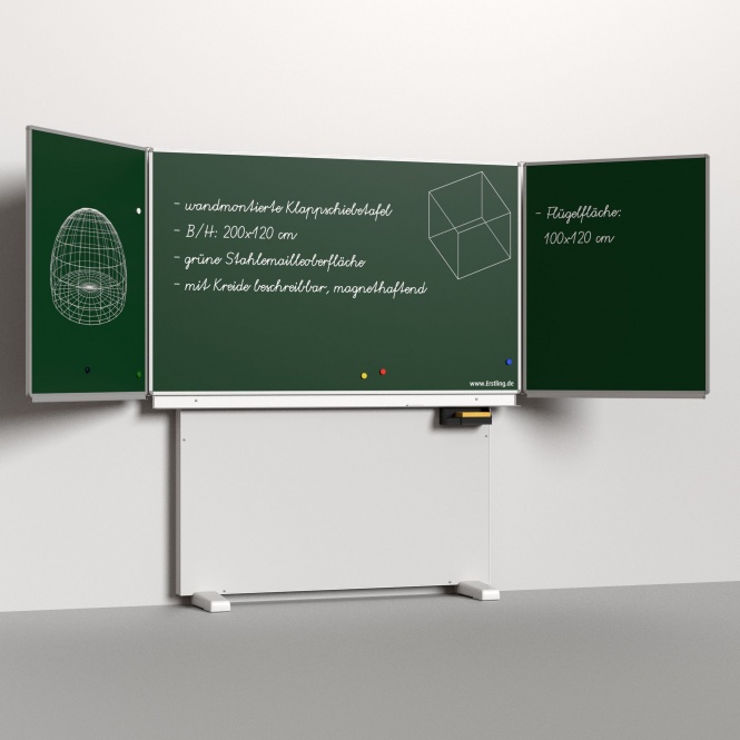 Klappschiebetafel, mit Stellfuß, Stahlemaille grün