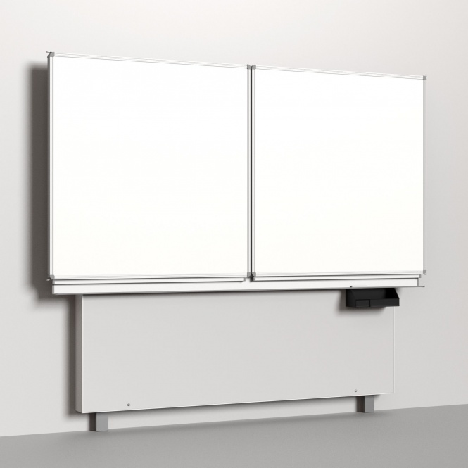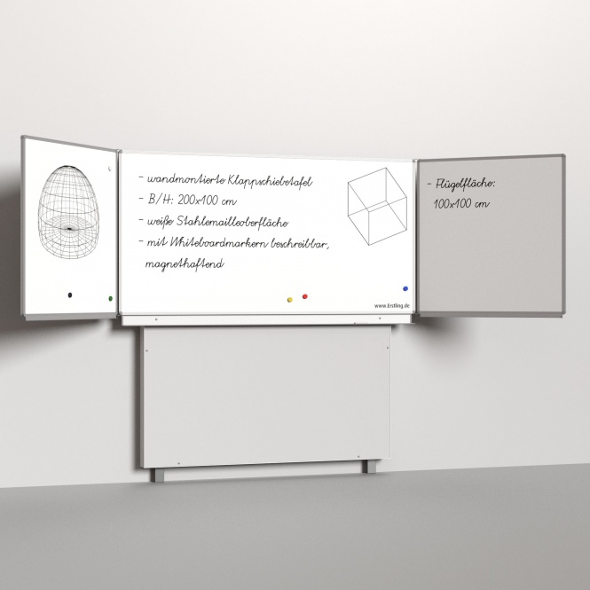 Klappschiebetafel, mit Fuß, Stahlemaille weiß