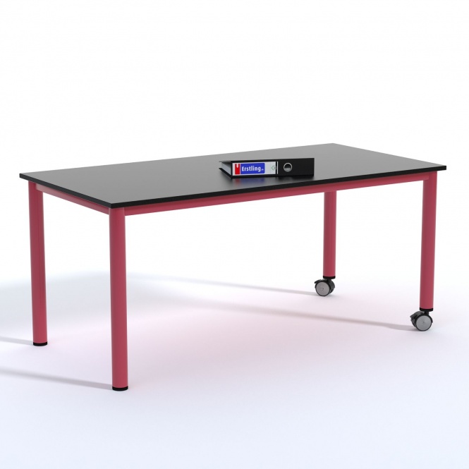 Rechtecktisch mit Rundrohrprofil-Füßen, fahrbar und höhenverstellbar