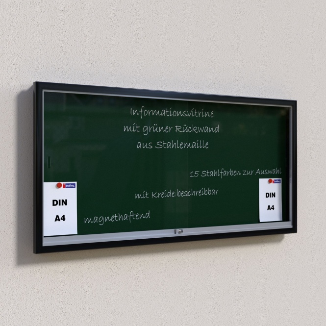 Info-Wandvitrine, 93 cm hoch, 195x8,0 cm (B/T), Rückwand: Emaille grün