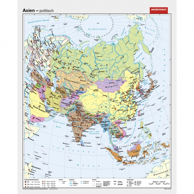Wandkarte Asien, phys.(Vorderseite), polit.(Rückseite), 147x180 cm