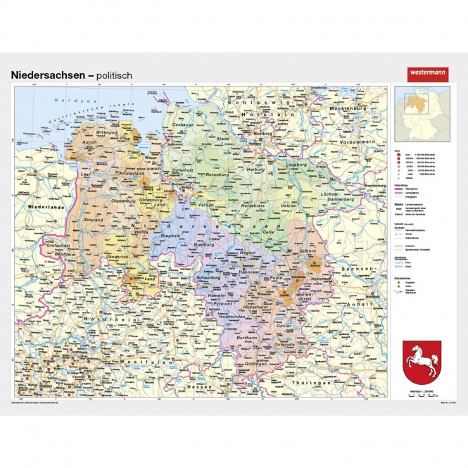 Wandkarte Niedersachsen, phys.(Vorderseite), polit.(Rückseite), 190x147cm