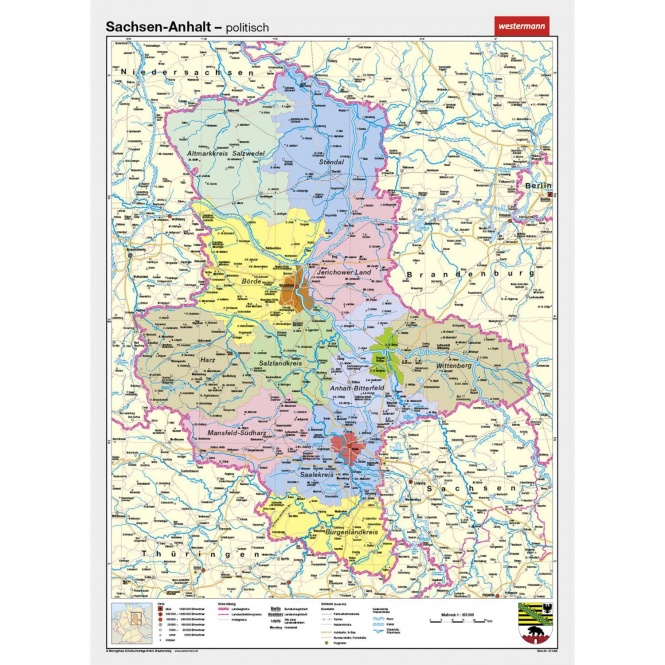 Wandkarte Sachsen-Anhalt, phys.(Vorderseite), polit.(Rückseite), 147x202cm