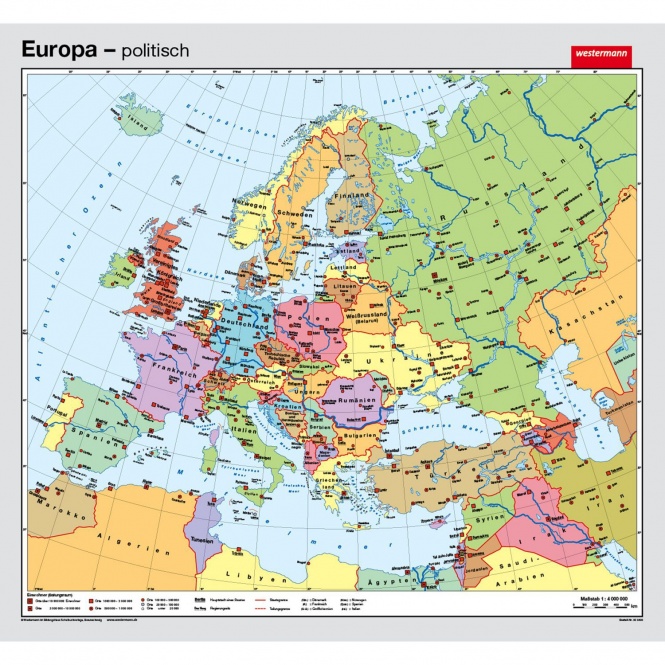Wandkarte Europa, phys.(Vorderseite), polit.(Rückseite), 155x144cm