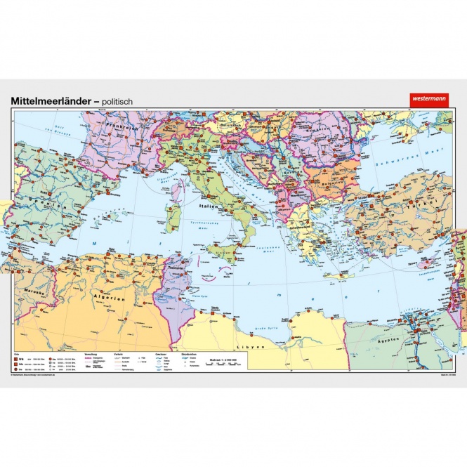 Wandkarte Mittelmeerländer, phys.(Vorderseite), polit.(Rückseite), 200x132cm,